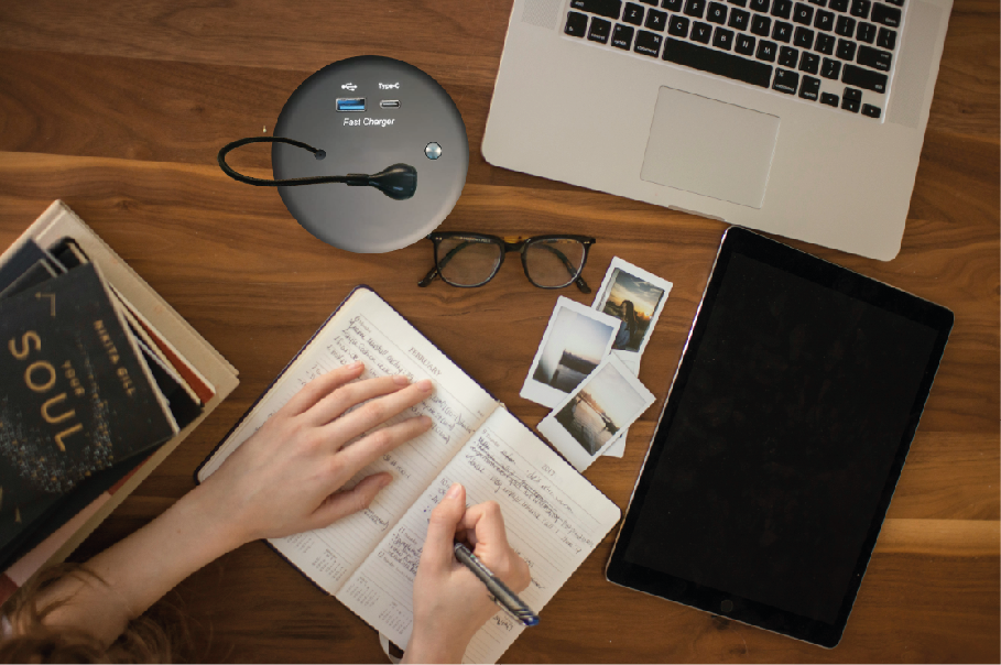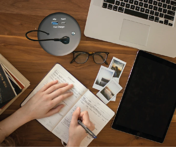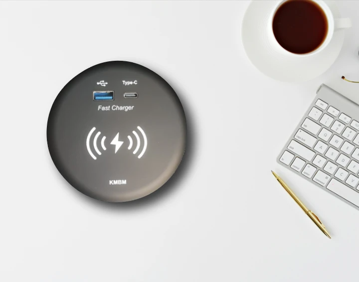 KMB-A006 USB A/USB C Şarj + Okuma Lambası Modülü, bir masaya veya mobilya yüzeyine estetik bir şekilde takılabilir. Dekorunuza mükemmel uyum sağlar ve tüm bağlantılar saklandığında akıllıca gizlenir. Güvenilirliği sağlamak için en yüksek standartlara göre tasarlanan bu modül, önde gelen otel ve mobilya markaları tarafından tercih edilmektedir.