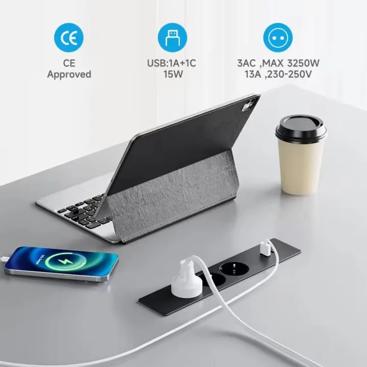 OECZ041B Gömme Montajlı Grup Priz; işlevsellik ve estetiği göz önünde bulundurularak özellikle modern ofis ve çalışma alanları için tasarlanmıştır. Yüksek kaliteli alüminyum ve PC malzemelerinden imal bu ürün, dayanıklılığı şık bir tasarımla birleştirir. Malzemeye gösterilen bu özen, yalnızca ürünün estetiğini artırmakla kalmaz, aynı zamanda uzun ömürlü olmasını da sağlar ve elektrik güvenliğinin öncelik olduğu her çalışma alanına güvenilir bir ek haline getirir. Standart dizüstü bilgisayarlardan ve yazıcılardan akıllı telefonlara ve tabletlere kadar çeşitli cihazlarla uyumludur. Kısacası bu ürün sağlam tasarımı, çok yönlü işlevselliği ve kullanıcı dostu özellikleriyle öne çıkmakta ve çalışma alanı verimliliğini artırmayı hedefleyen her işletme için vazgeçilmez hale gelmektedir