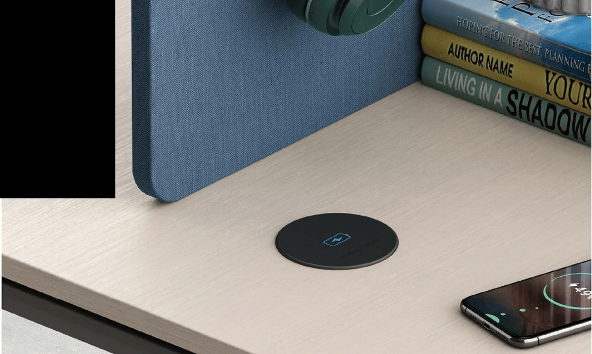 OEXH701A Akıllı Kablosuz Şarj ürünü masa üstüne monte edilir. Daha farklı yapı veya malzeme mobilyalarına uyması için düz kenarlı, ve gizli görüntüsü vardır.